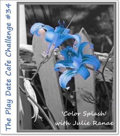 I love the color challenges, and this week's Play Date Cafe' Challenge is a wonderfully simple one: black and white with a "splash" ......of blue.